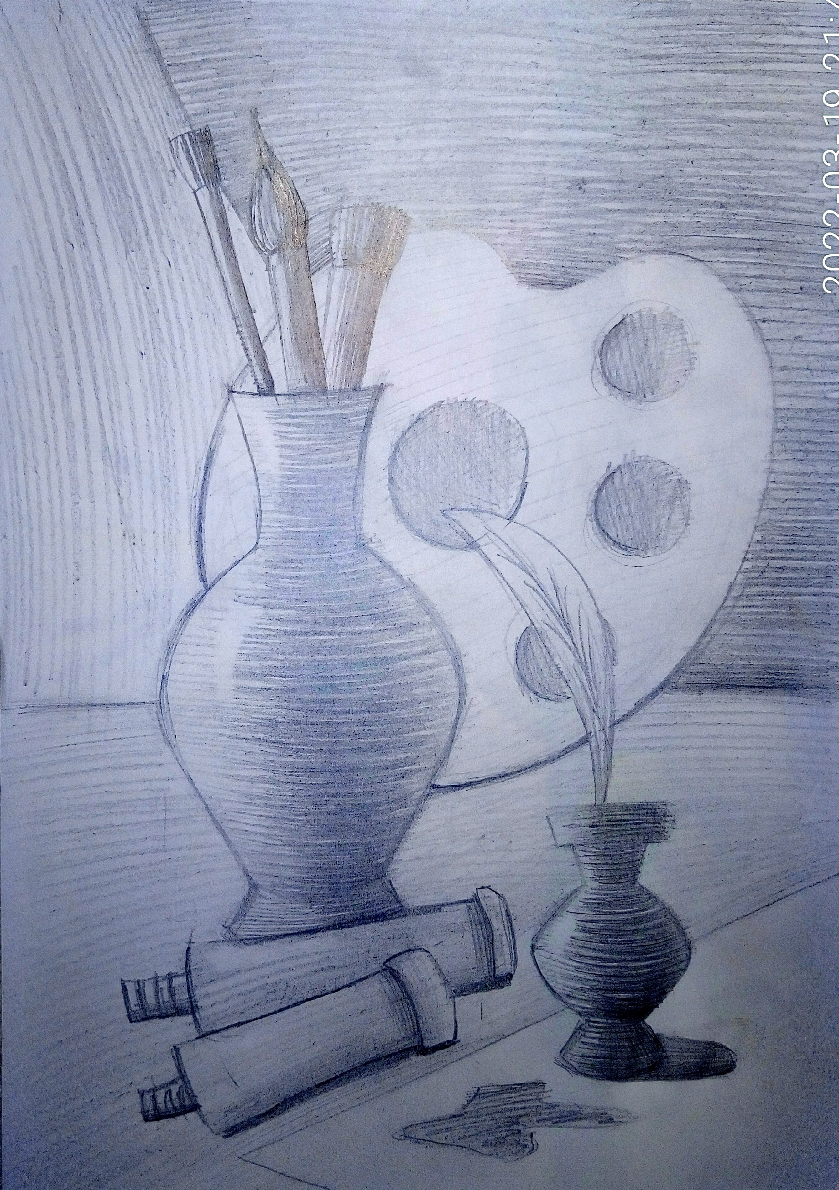 2. Намалюйте натюрморт з атрибутами мистецтва (акварель, гуаш)