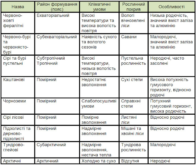 3) особливості компонентів (форми рельєфу, гірські породи, глибина залягання підземних вод, ґрунти, тип і багатство рослинності, види тварин);